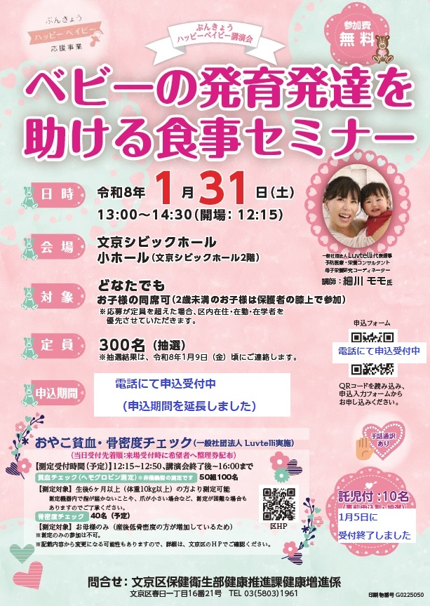ホーム > 子育て・教育 > 出産・乳幼児 > 妊娠・出産 > ぶんきょうハッピーベイビー応援事業 > 【申込期間を延長しました!】ハッピーベイビー講演会