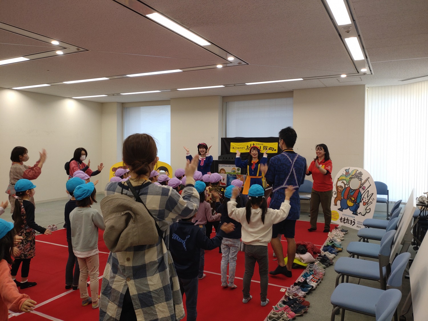 また、4年ぶりに実施したステージショーでは、パントマイムとあそび歌ライブが披露され、子どもたちも一緒に体を動かしながら遊んだり、体験コーナーでは、子どもたちが家族やスタッフと一緒に作品作りを楽しんだりしていました。