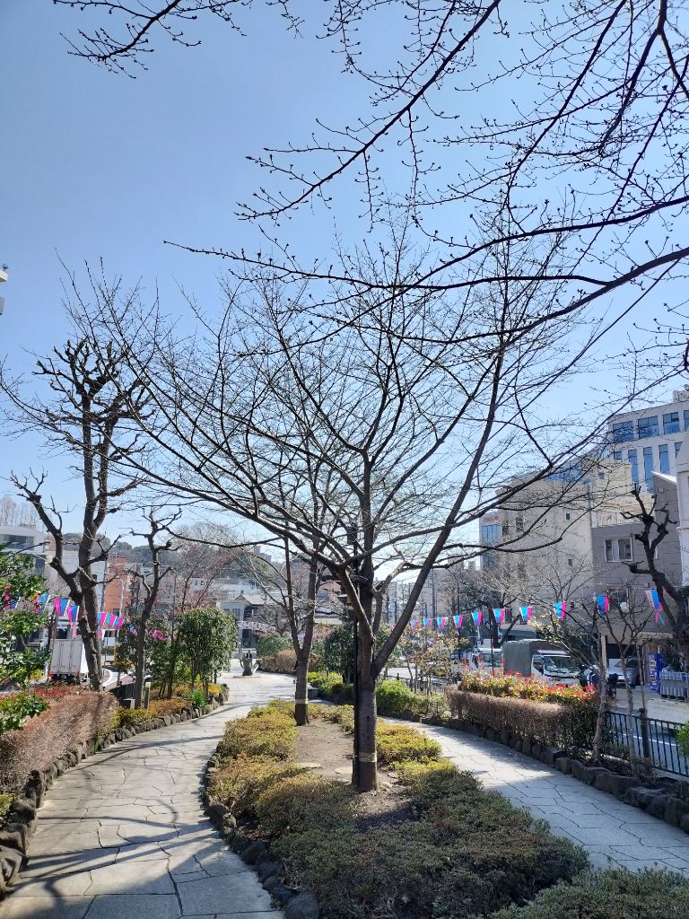 桜はまだつぼみの状態で咲くまでもう少しかかりそうです。一方、咲き始めの早い河津桜はすでに終わりを迎えています。